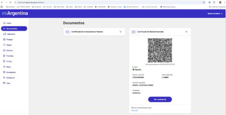 Una vez dentro de la cuenta, los usuarios podrán acceder a la sección de documentación, donde se encuentra la credencial de radioaficionado en formato digital, disponible para consulta o descarga.