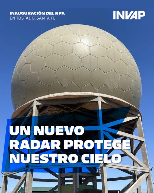 El Ministro de Defensa, Luis Petri, junto al Jefe del Estado Mayor Conjunto de las Fuerzas Armadas Brig. Xavier Isaac, el Jefe de la Fuerza Aérea, Brigadier General Fernando Luis Mengo, y representantes de INVAP, el Ing. Gabriel Absi (Subgerente General Operativo) y el Ing. Javier Conti (Gerente del Área de Defensa, Seguridad y Ambiente), inauguraron una nueva estación radar RPA (Radar Primario Argentino) en Tostado, provincia de Santa Fe.